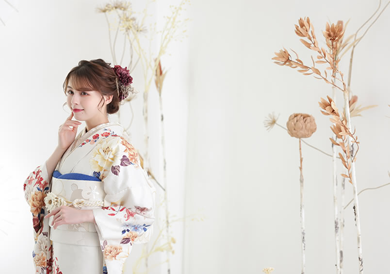 古典から流行のくすみ系まで、幅広く商品を取り揃えております。成人式振袖250点以上、卒業式着物750点以上&袴800点以上。お気に入りの1着が必ず見つかります。